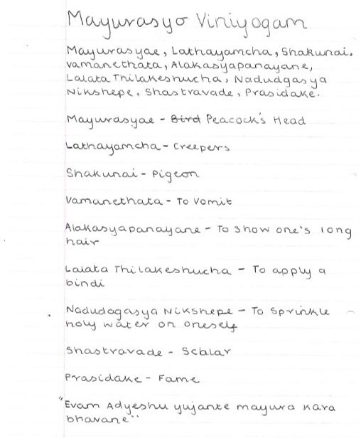 Mayurasyo Hastha ViniyogamJahnvi SankaranarayananAug 15, 20211 min readUpdated: Aug 16, 2021The Mayurasyo Hastha Viniyogam written by Jahnvi Sankaranarayanan, a Grade 4 Bharatanatyam student from the Sutton Branch